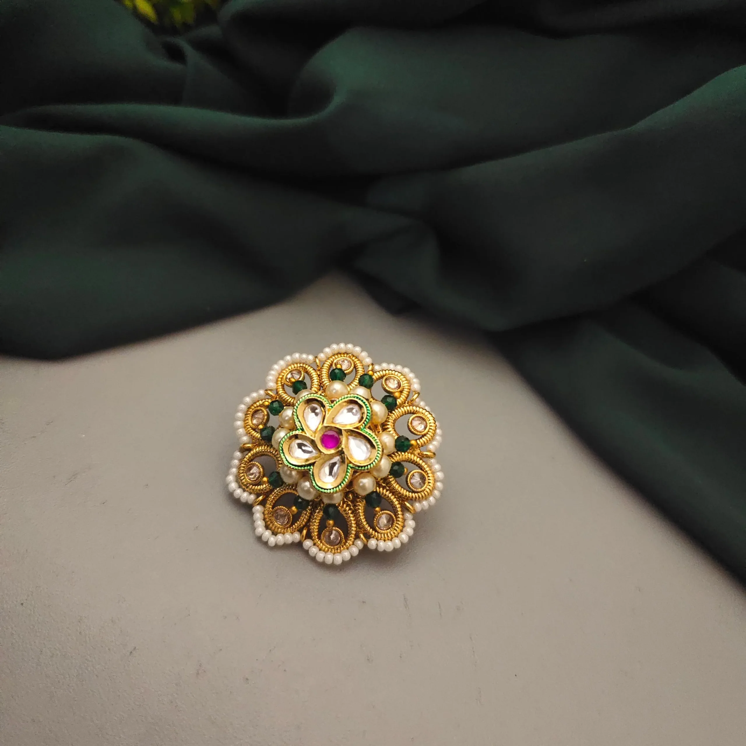 Introducing Our Chic Adjustable Kundan Polki Copper Ring | Elegant Design